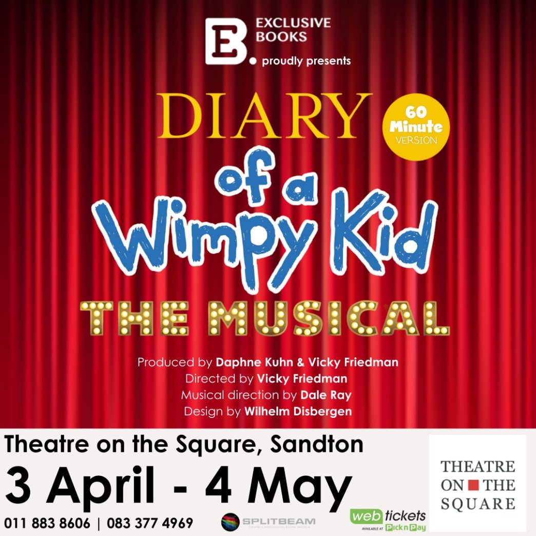 Theatre owner and Producer Daphne Kuhn adds, “Theatre on the Square is very proud to be partnering with Exclusive Books on this educational, entertaining and synergous project. Our partnership reinforces our objectives for youth development and literacy through the medium of reading and theatre. What finer project could there be than this fabulous international hit musical. Boasting two casts of young people, together with seasoned professionals, Diary of a Wimpy Kid, the musical, is based on the world’s best-selling children’s book series and will be a first for South Africa!”
