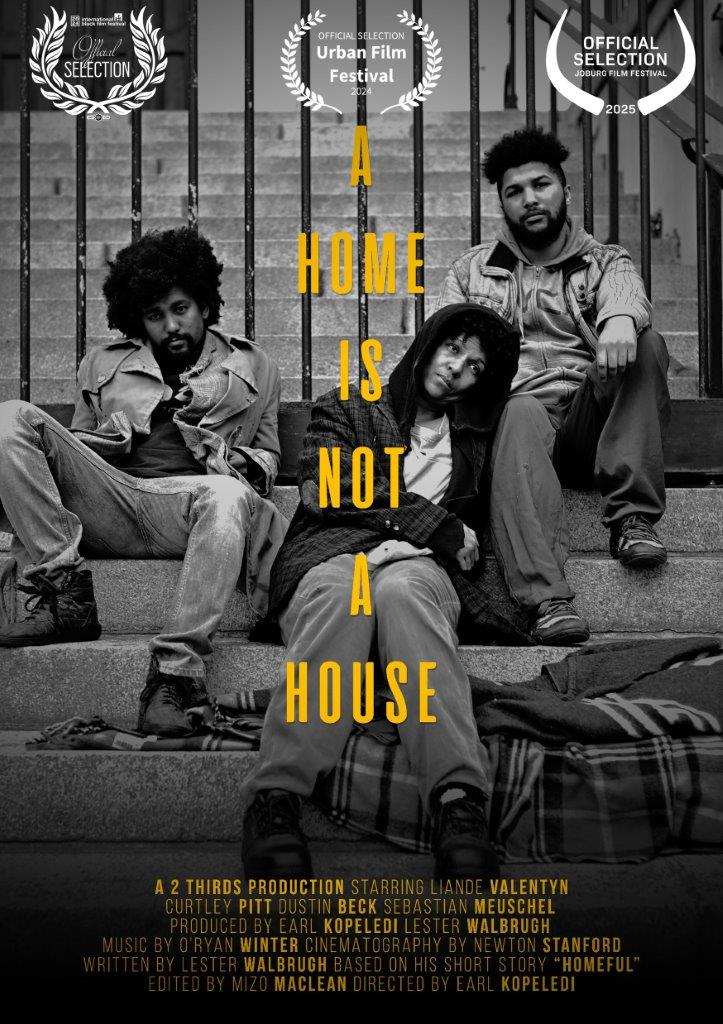 ‘A Home Is Not a House’, was screened and nominated as Best International Short film at the Miami Urban Film Festival. The film was also nominated as best international film at the International Black Film Festival in Nashville, Tennessee. The Afrikaans-language film is an adaptation of Lester Walbrugh’s short story (Homeful) from his collection of short stories published by Karavan Press.
