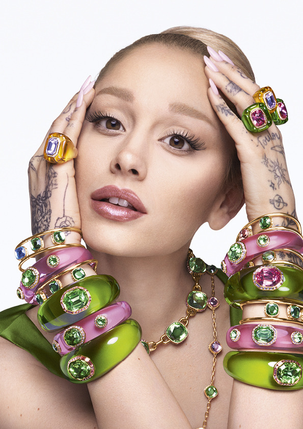 Ariana Grande says, “I’m so excited that my creative journey continues with Swarovski, and I love the metamorphosis storyline of this new Spring-Summer 2025 campaign. Styled in a palette of vibrant colors and radiant crystal jewelry, this campaign felt truly uplifting and joyful.”