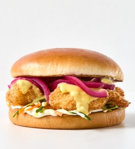 Panko Fish Burger: A flaky fish fillet wrapped in a light, golden panko crumb. It’s crisp on the outside, melt-in-your-mouth on the inside, and paired with a creamy, zesty sauce that brings it all together.