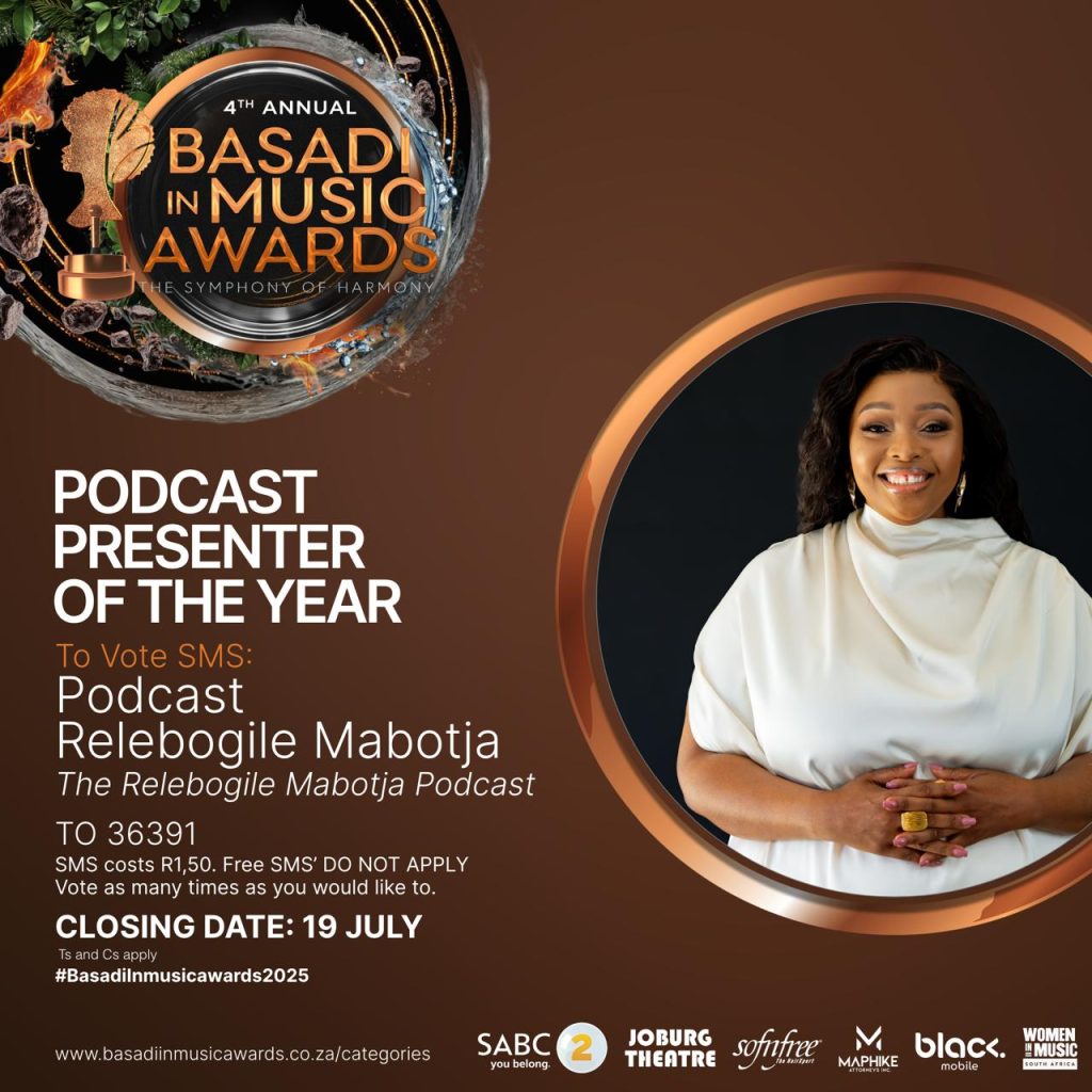 With a legacy two decades deep and still climbing, Relebogile Mabotja continues to prove why she is one of South Africa’s most versatile and respected voices in entertainment. Today, she adds yet another remarkable acknowledgment to her career story: three nominations from the 2025 Basadi In Music Awards (BIMA) across radio, TV and podcasting.
