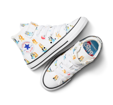 The collection spans a wide range of styles, each one crafted to reflect the colourful energy and emotional depth of the show. The Chuck Taylor All Star Hi features a bold canvas upper with mixed digital print techniques and core Chuck details, while the EVA Lift version includes a discoverable Bluey Star detail on the lining — a hidden homage to the show’s sense of wonder. The Chuck Taylor All Star 1V arrives in multiple variations, including a playful homage to the “Keepy Uppy” episode and a version with left and right shoes representing Bluey and Bingo, complete with fuzzy tail heelstays.